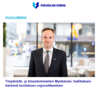 13.2.2024 Uutiset Uutiskirjeet Uutiskirjeessämme: Ministeri Mykkäsen haastattelu energiapoliittisista linjauksista ja ajankohtaista vastuullisuudesta Pohjolan Voiman uutiskirjeen 1/2024 haastattelussa ympäristö- ja ilmastoministeri Kai Mykkänen: ”Hallituksen kärkenä on luvituksen sujuvoittaminen”. Haastattelussamme ministeri Mykkänen vastaa kysymyksiin hallituksen energ…