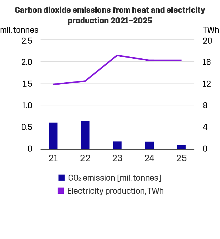 Our CO2 emissions have been decreasing mainly due to the fact that less coal – and peat – is used. In 2025 our