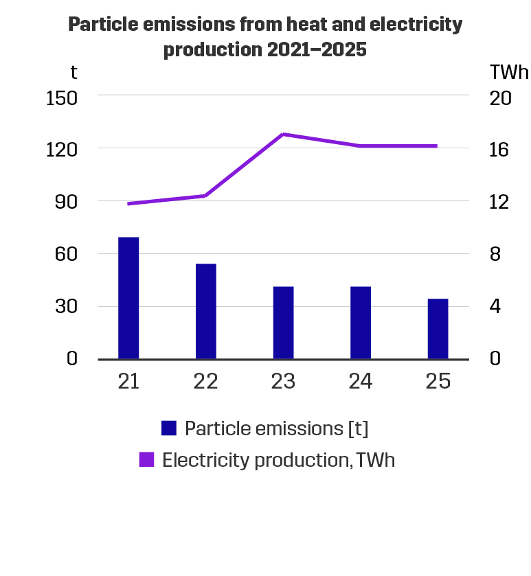 We have been reducing the use of coal and peat systematically. At the same time, our carbon dioxide emissions have reduced. We are also reducing our carbon dioxide emissions by improving energy efficiency. Sulphur dioxide and particle emissions have also decreased significantly.