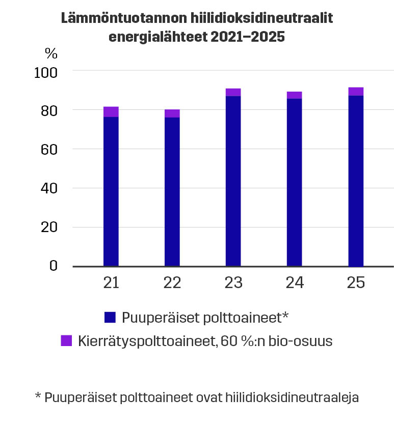 Tavoitteenamme on rajata fossiiliset polttoaineet, turve mukaan lukien, käynnistys- ja varapolttoaineiksi vuoteen 2025 mennessä, mikäli markkinat sen sallivat. Etenemme määrätietoisesti kohti hiilidioksidineutraalisuutta.