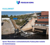 2.10.2023 Tiedotteet Uutiset Voimalaitosten uutiset Raasakan voimalaitoksella sijaitseva Kalasydän-kalatie toiminnassa PVO-Vesivoima Oy:n Iijoen Raasakan voimalaitoksella sijaitseva Kalasydän-kalatie on kiinnostanut kaloja. Tähän mennessä kalatietä on käyttänyt yhteensä 112 lohta ja taimenta sekä runsas määrä muita kalalajeja, esimerkiks…