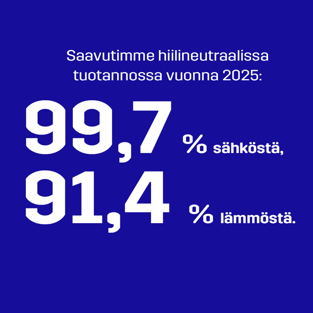 Vastuullisuus on kiinteä osa Pohjolan Voiman strategiaa. Jatkoimme vastuullisuusohjelmamme ja siihen liitetyn luonnon monimuotoisuusohjelman toteuttamista. Ylitimme vuodelle 2025 asettamamme ilmastotavoitteet. Sähköntuotantomme on 99,7-prosenttisesti ja lämmöntuotantomme 91,4-prosenttisesti hiilineutraalia. Ylitimme tavoitteemme, jotka olivat sähköstä 99 % ja lämmöstä 85 % hiilineutraalia vuoteen 2025 mennessä. Myös turpeen käyttömme väheni tavoitetta enemmän. Turpeen käyttö oli vähentynyt 94 % vuoden 2019 tasosta, kun tavoitteenamme oli 80 %:n vähennys.
